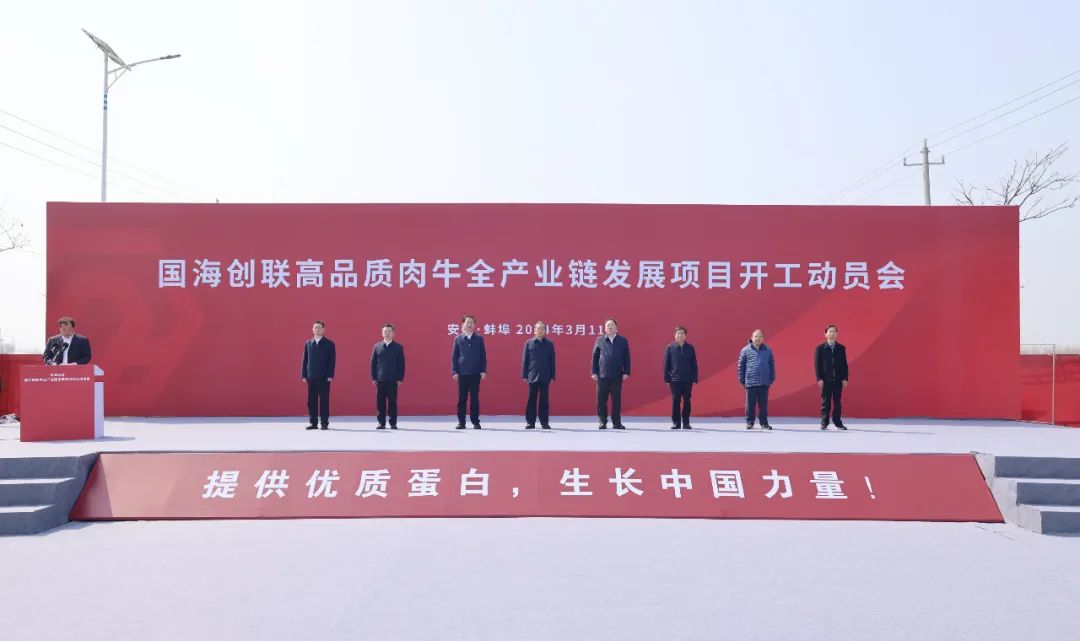 3月11日上午,國海創(chuàng)聯(lián)高品質(zhì)肉牛全產(chǎn)業(yè)鏈發(fā)展項目開工動員會在懷遠縣舉行。副省長張曙光宣布項目開工,市委書記黃曉武致辭,省政府副秘書長金宗順,省農(nóng)業(yè)農(nóng)村廳廳長汪學(xué)軍,省農(nóng)墾集團總經(jīng)理張其廣,省農(nóng)業(yè)農(nóng)村廳副廳長湯洋,國海創(chuàng)聯(lián)實業(yè)集團有限公司董事長閆濤,國家肉牛牦牛產(chǎn)業(yè)技術(shù)體系首席科學(xué)家曹兵海,市領(lǐng)導(dǎo)王慶武、吳永彬、喬樹偉,淮北市、亳州市、宿州市、阜陽市、淮南市、滁州市、六安市政府分管負責(zé)同志出席。蚌埠國控集團黨委書記、董事長陳建功和集團黨委副書記、副董事長、總經(jīng)理劉冰參加動員會。